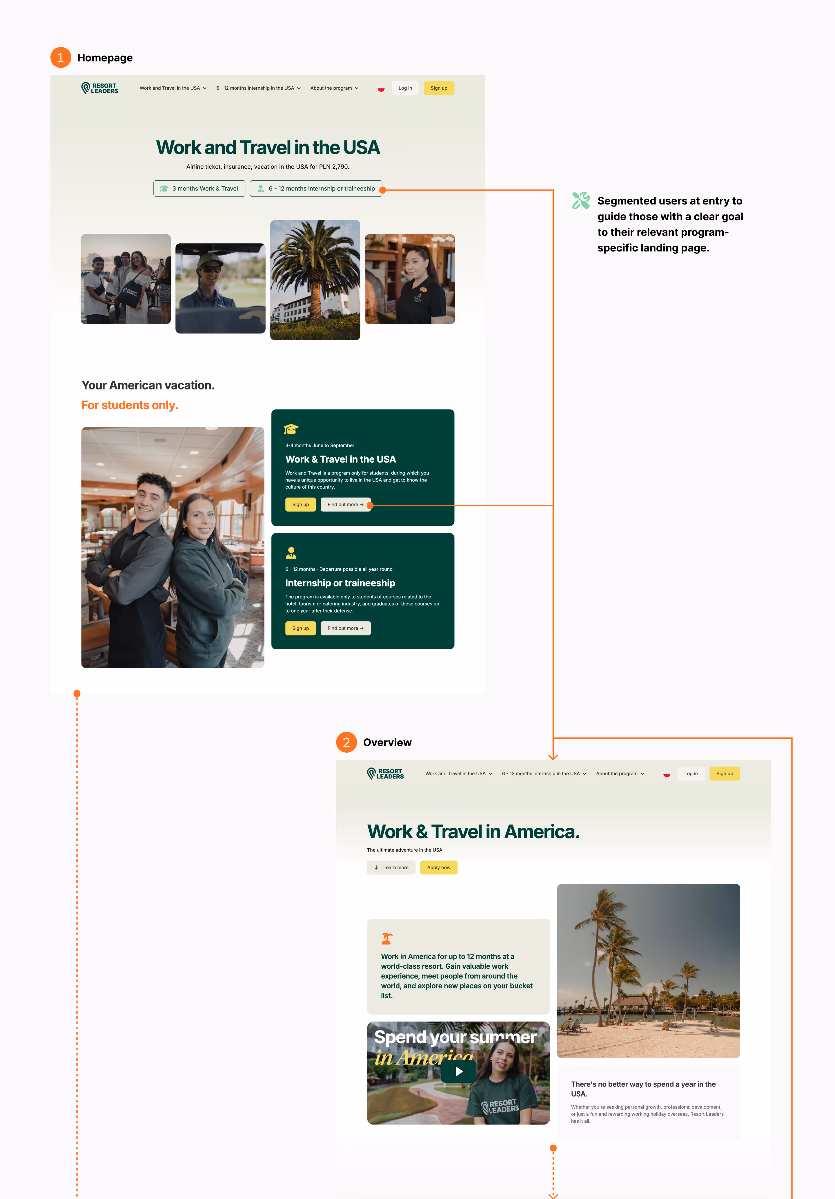 Visitors come through search, social media, or referrals. Some already know a bit about us; others are simply inspired by the idea of working and traveling. They arrive with different levels of understanding. And we offer two distinct programs: one for summer work and travel, the other for structured internships.