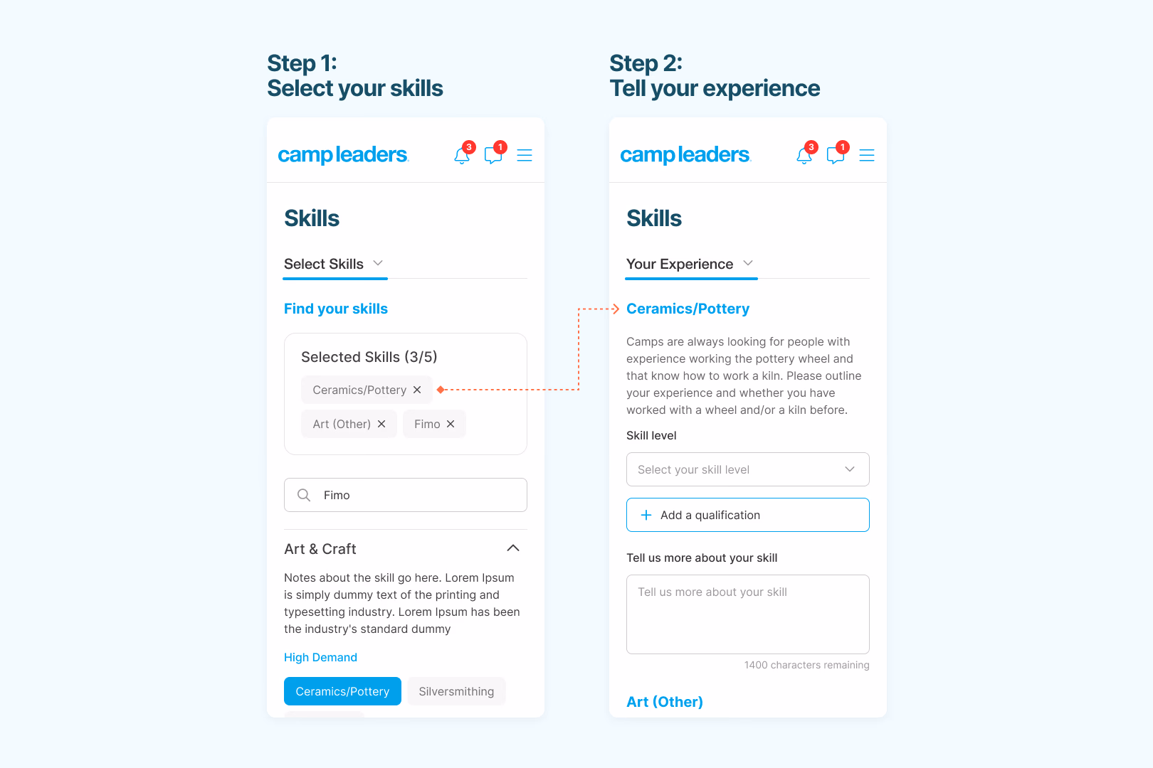 Our company recruits students for seasonal work at camps and resorts. Within our recruitment system, applicants must complete a section called Skills, where they list their abilities, indicate their proficiency level, and briefly describe how they use those skills.